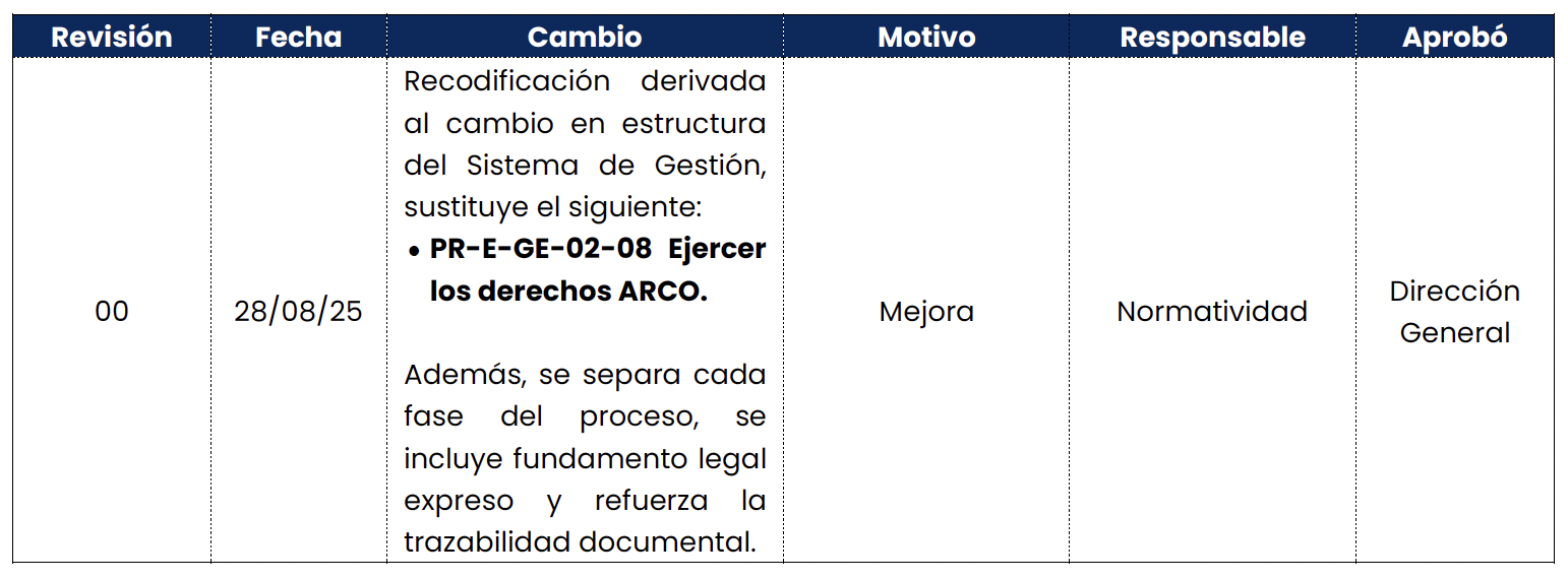 Establecer los mecanismos para que los Titulares ejerzan sus derechos de acceso, rectificación, cancelación y oposición (ARCO), así como la revocación del consentimiento, garantizando el cumplimiento de la LFPDPPP, su Reglamento y los Parámetros de Autorregulación Vinculante, bajo principios de legalidad, transparencia y responsabilidad, asegurando atención oportuna, trazabilidad y conservación de evidencias.